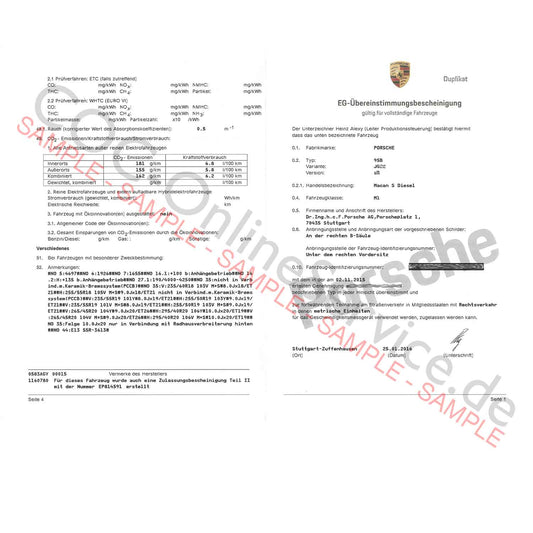 COC-dokument för Porsche (Certifikat om överensstämmelse)