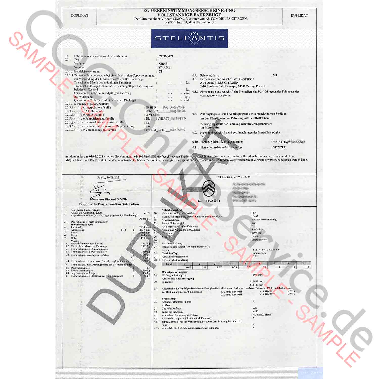 Once the document is created by the vehicle manufacturer, you will receive an eMail with the PDF of your COC. With this copy it is possible in many cases to register your vehicle or to make a technical inspection. The original document will then be sent to you by mail or express.