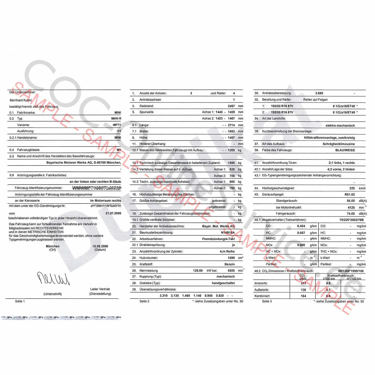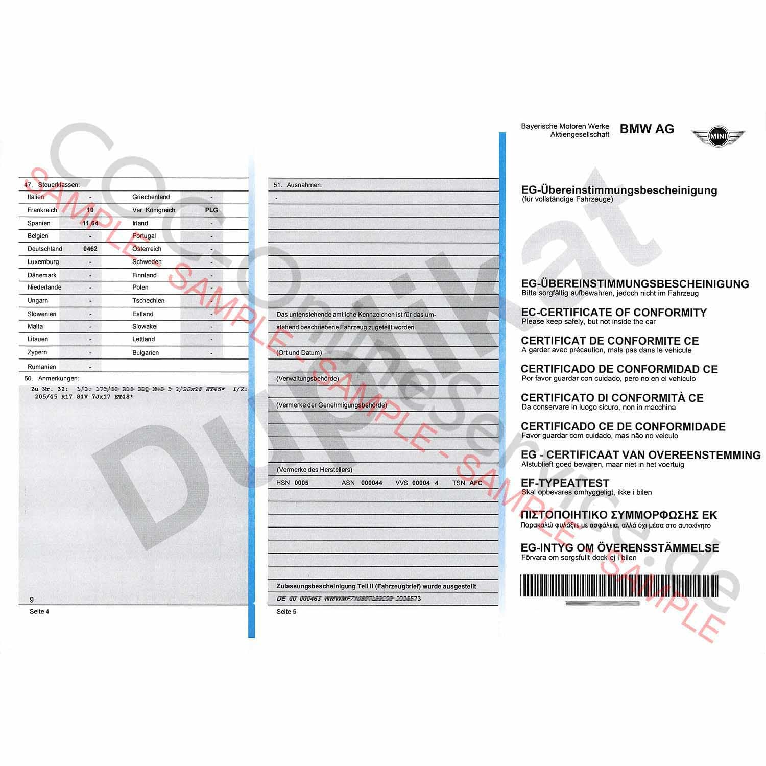 Once the document is created by the vehicle manufacturer, you will receive an email with the PDF of your COC. With this copy, you can, in many cases, register your vehicle or undergo a technical inspection. The original document will then be sent to you by postal mail or express delivery.