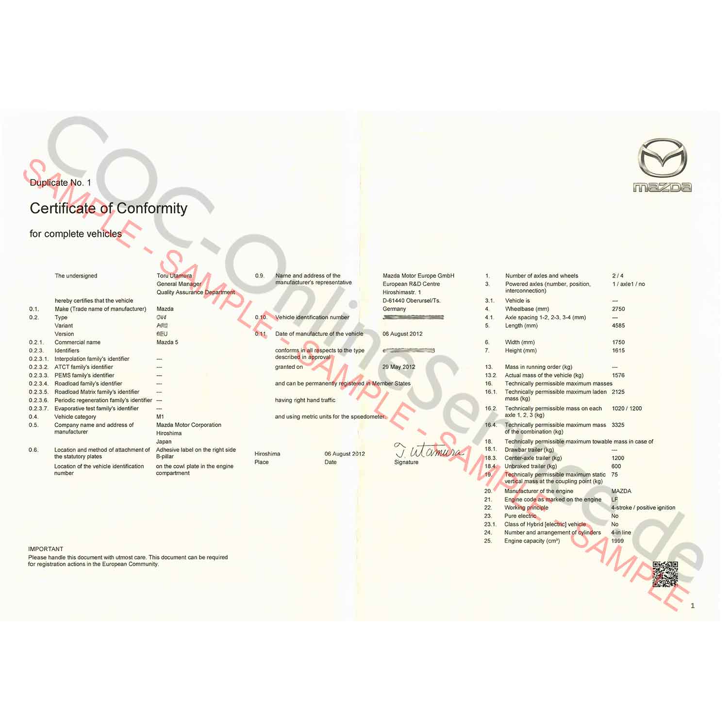 Kun asiakirja on luotu ajoneuvon valmistajan toimesta, saat sähköpostilla PDF:n COC:sta. Tällä kopiolla on monissa tapauksissa mahdollista rekisteröidä ajoneuvo tai suorittaa tekninen tarkastus. Alkuperäinen asiakirja lähetetään sitten postitse tai expressillä.
